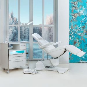 Кресло косметологическое «АЛЬБА 3.0» оснащено тремя электромоторами (регулировка высоты, изменение угла наклона сиденья и ножной части). Кресло легко раскладывается в горизонтальное положение и образует ровную поверхность.