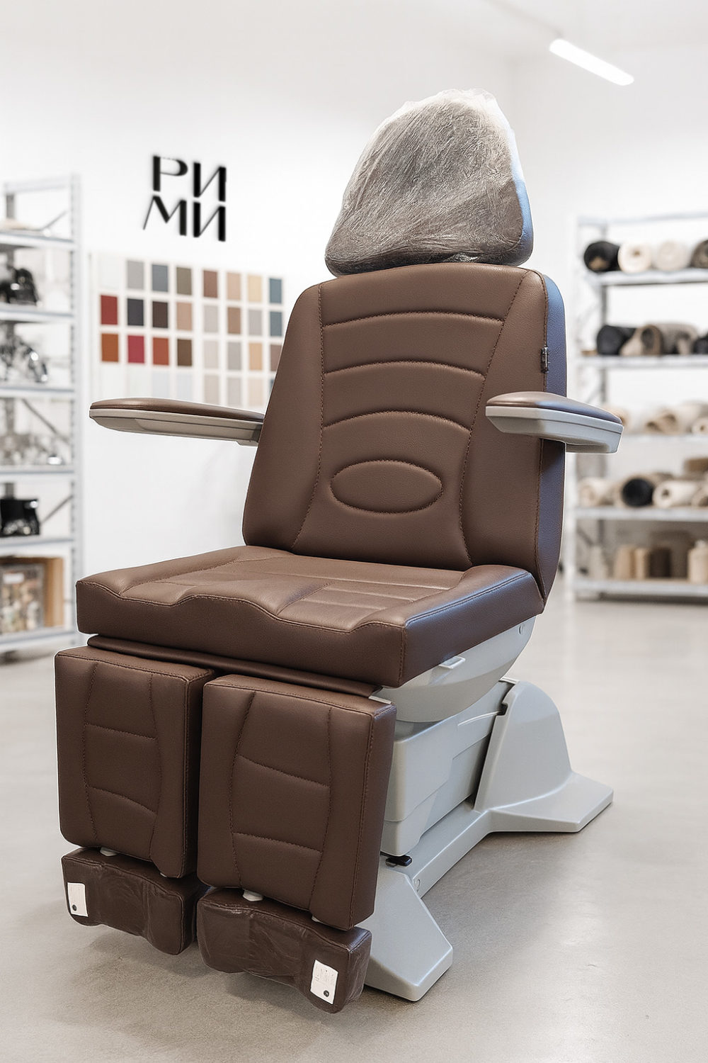 Педикюрное кресло оснащено тремя электромоторами, обеспечивающими регулировку высоты, угла наклона спинки и угла наклона сиденья. Опоры для ног фиксируются при помощи газ-лифтов. Кресло легко раскладывается в горизонтальное положение, образуя ровную поверхность. Надежная конструкция системы подъема обеспечивает высокую устойчивость кресла даже при максимальной высоте. Откидывающиеся подлокотники делают более удобным процесс посадки клиента. Управляется при помощи ручного проводного пульта. Дополнительно при производстве могут быть установлены различные опции.