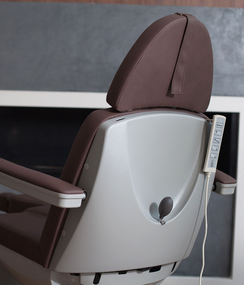 – Механизм поворота (возможность механически поворачивать кресло вместе с клиентом на угол до 270 градусов вокруг оси и фиксировать вращение)