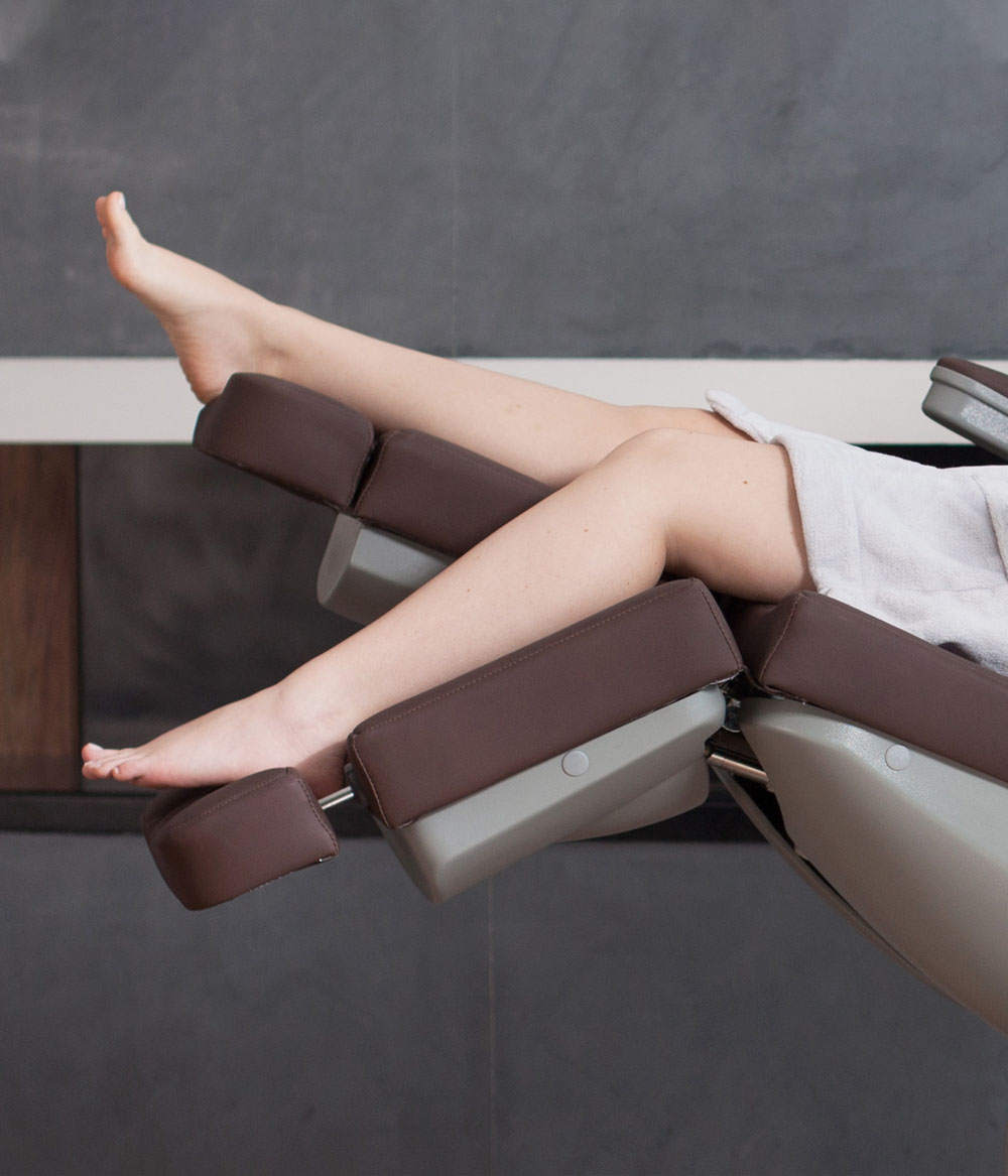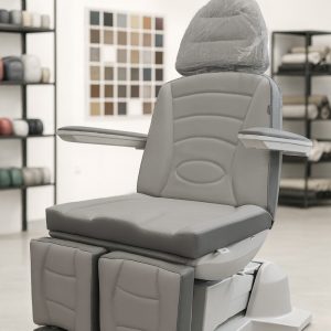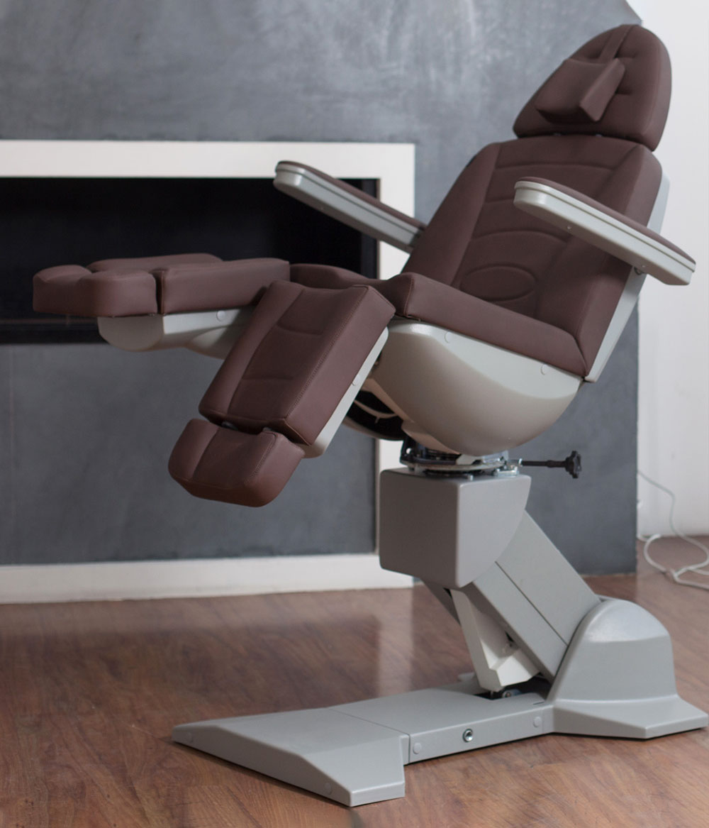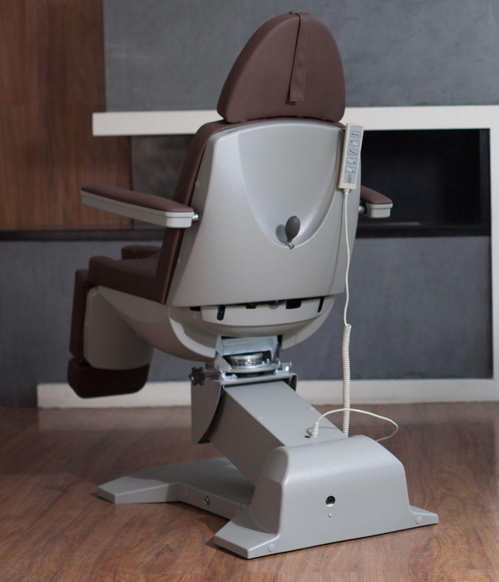 Педикюрное кресло оснащено пятью электромоторами, обеспечивающими регулировку высоты, наклона спинки, наклона сиденья и ножных опор. Кресло легко раскладывается в горизонтальное положение, образуя ровную поверхность. Надежная конструкция системы подъема обеспечивает высокую устойчивость кресла даже при максимальной высоте. Откидывающиеся подлокотники делают более удобным процесс посадки клиента. Управляется при помощи ручного проводного пульта. Дополнительно при производстве могут быть установлены различные опции.