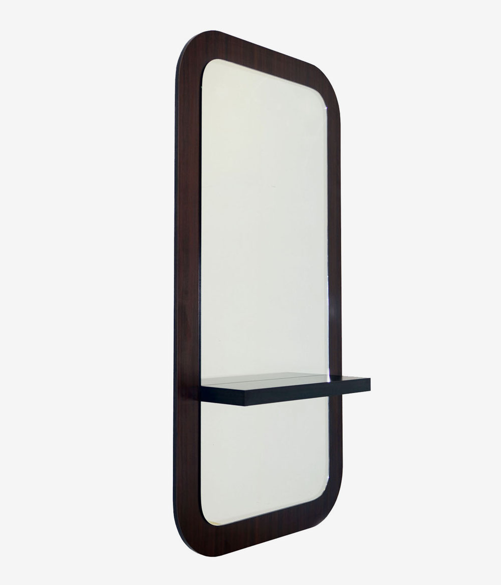 Простое и стильное зеркало со скругленными углами и увеличенной зеркальной поверхностью, хорошо впишется в любой интерьер. Прочная полка в цвет основания может быть дополнительно оснащена держателем для фена.